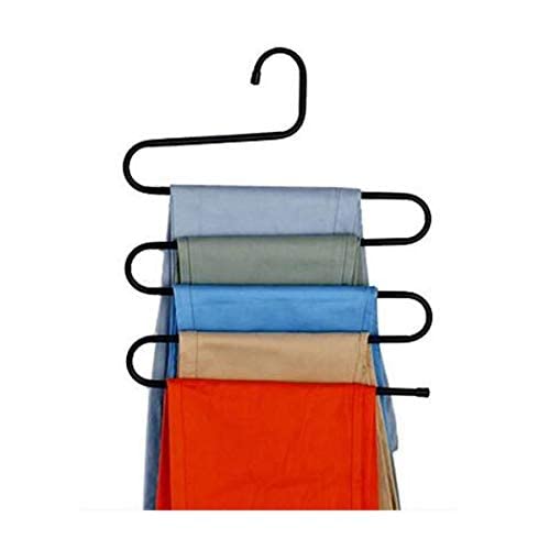 Spaceshoop - شماعة تعليق الملابس السحرية متعددة الطبقات والوظائف للبنطلونات، مصنوعة من الحديد بتصميم حرف S، شماعة للرفوف ولتخزين الملابس وللتعليق في الدولاب - أسود، مقاس واحد