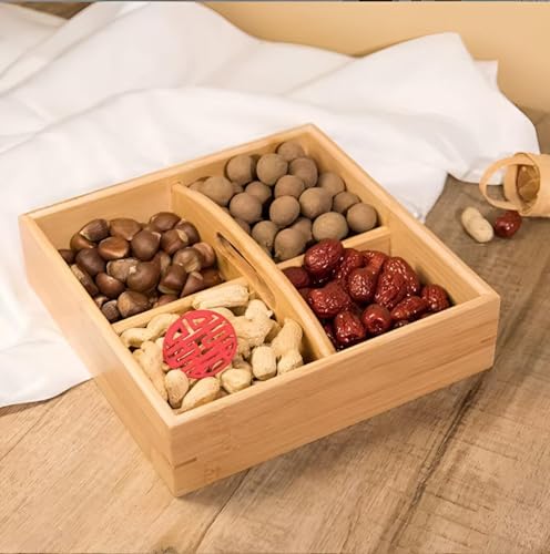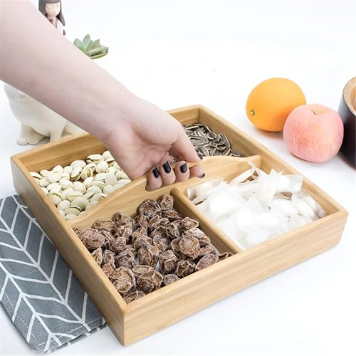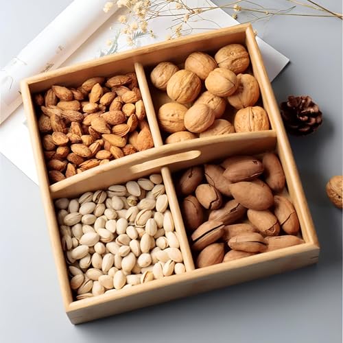 - Wooden snack box divided into 4 compartments for easy storage and access, designed to hold your favorite snacks, nuts, and candies while adding a stylish touch to your space. Perfect for organizing your snacks.