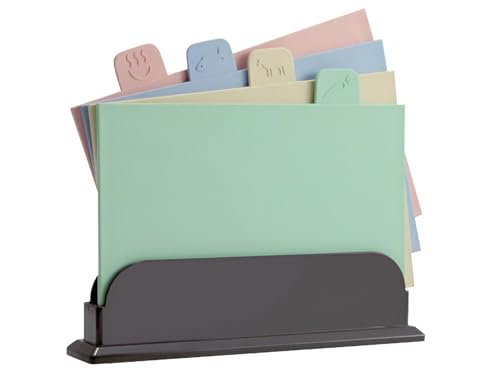 - Designed with space-saving in mind, the set features an integrated holder that keeps the boards organized and compact on your countertop, optimizing kitchen space and reducing clutter.