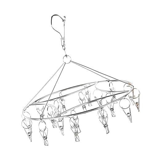 Generic - علاقة غسيل متعددة الأغراض - مصممة للتجفيف والتخزين مع 20 مشبكًا، مثالية لنعال الأحذية والجوارب المستديرة والملابس؛ رف تجفيف من الفولاذ المقاوم للصدأ مقاس 36*20 سم