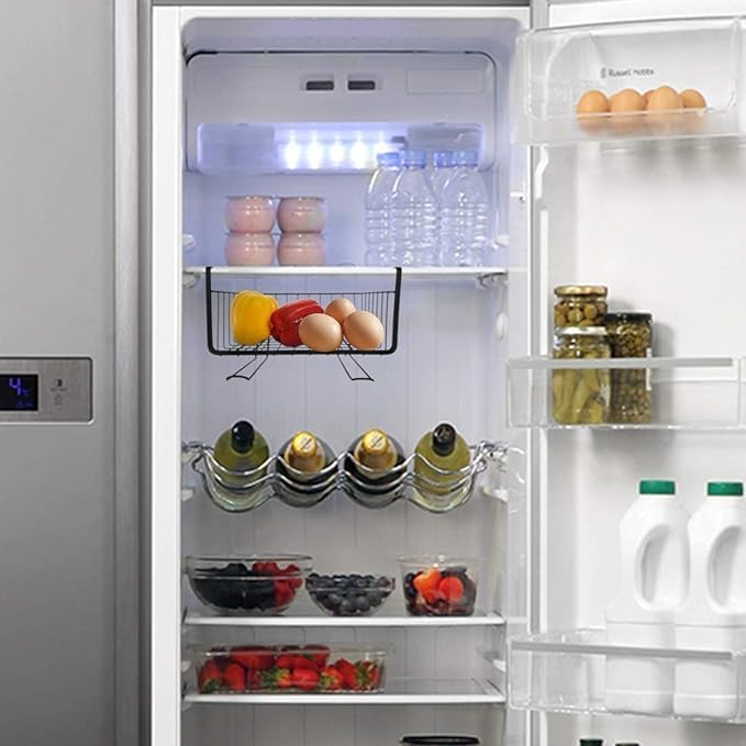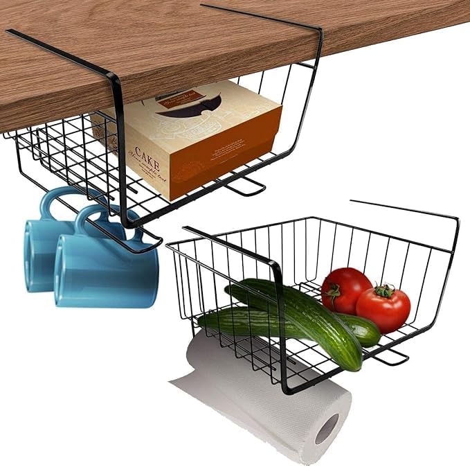 - سلة تخزين اسفل رف المطبخ، رف بسلك، سلة تخزين بتصميم حامل لدولاب المطبخ