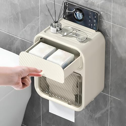 Generic - حامل ورق متعدد الأغراض - صندوق مناديل يثبت على الحائط مع رف علوي للموبايلات والتابلت، مثالي لتخزين أكياس القمامة ومنتجات النظافة الأنثوية مثالي لأي غرفة في منزلك