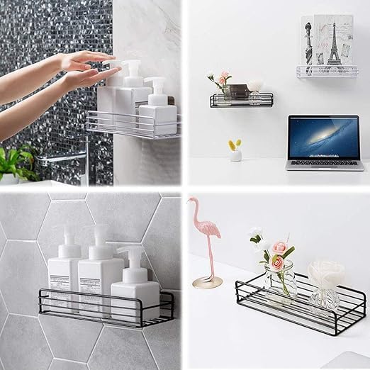 Generic - Multipurpose Shelf Wall Holder Storage Rack with Strong Magic Sticker Iron Wall Holder Storage Rack Hanging Bathroom Shower Caddy - Black