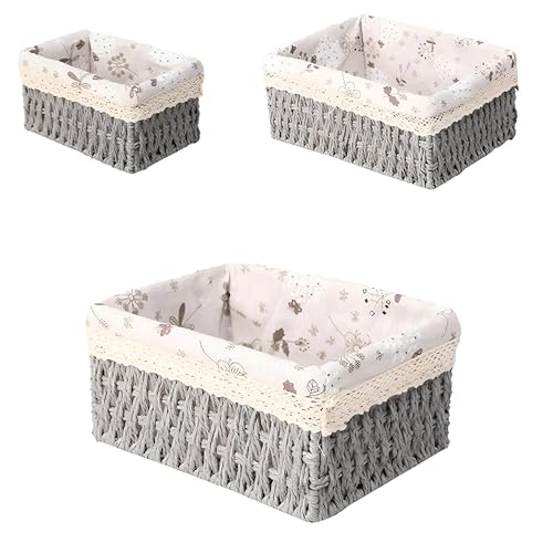 Generic - Multipurpose Storage Baskets - 3 Pack Hand Woven Paper Rope Organizer Baskets with Liner, Perfect for Keeping Your Home Clutter Free and Neatly Organized in Any Room (Grey)