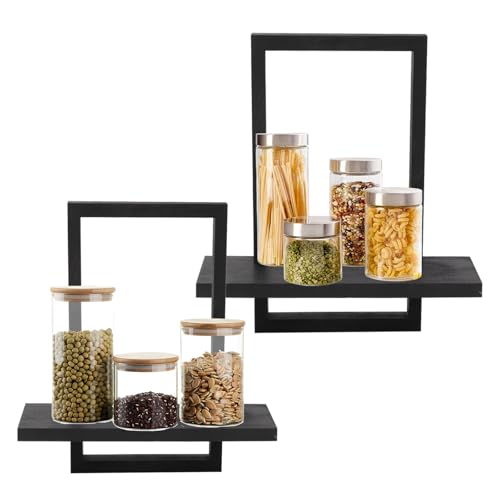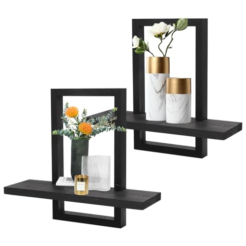 mumisuto - Set of 2 Wall Shelves, Wooden Floating Shelf, Floating Shelf for Wall Decoration, Square Bookcase Wall, Hanging Shelf, Wooden Wall Shelf, Wall Decoration for Bedroom, Living Room (Black)