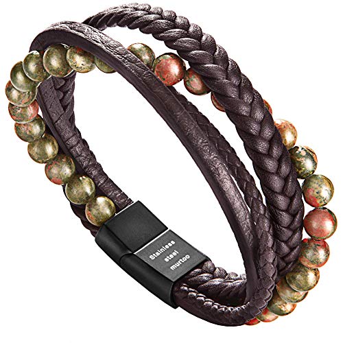 murtoo - سوار من الجلد والخرز الطبيعي مورتو الستيل والجلد يُقدم كهدية في المناسبات العامة جلد