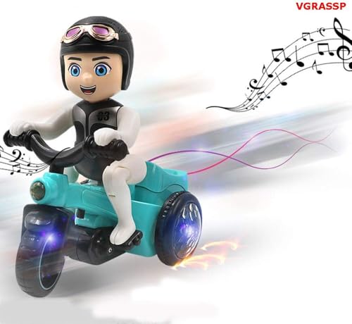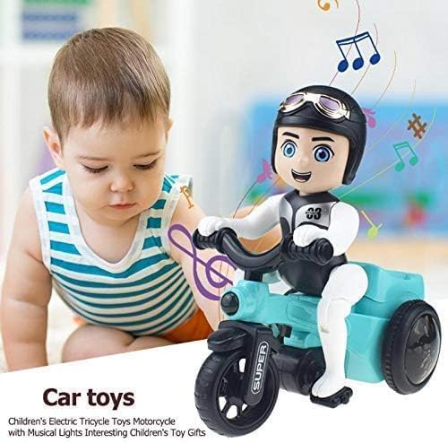 Generic - درّاجة ثلاثية موسيقية للأطفال – Musical Tricycle Toy with 360° Rotating Movement & LED Lights, Grey & Turquoise