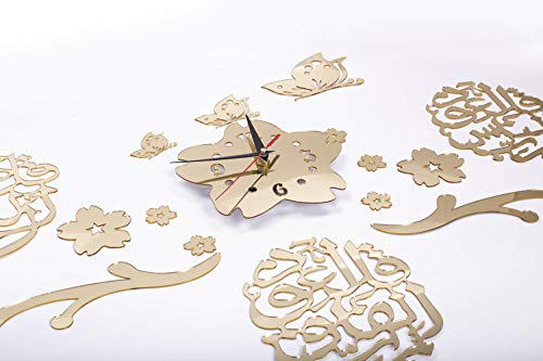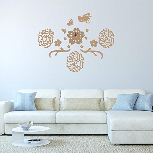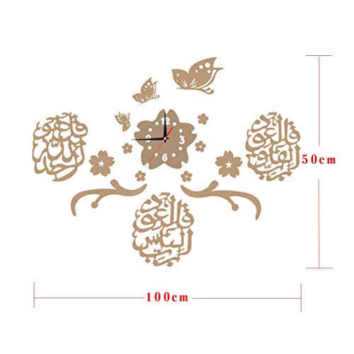 Other - ساعة حائط اسلامية ذاتية الصنع مصنوعة من الاكريليك بتصميم مراة ثلاثية الابعاد لديكور المنزل ذهبي رقمي