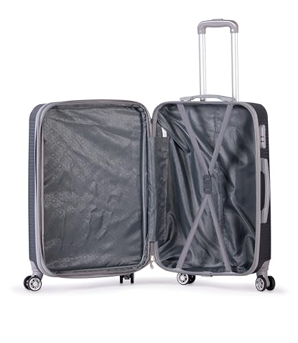 Musselz - حقيبة سفر من ماسلز، باللون الأزرق الداكن، بهيكل صلب، قطعة واحدة، قابلة للتوسيع مع عجلات دوارة وقفل بالرمز