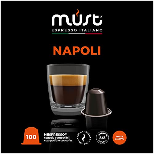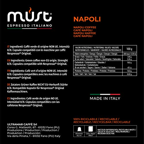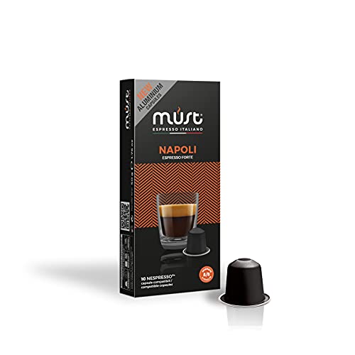 MUST - MUST 10 Coffee Capsules in 100% Aluminum Infinitely Recyclable Napoli Blend Intensity 8/8, Pack of 10 Capsules Compatible with Nespresso Machine, Made in Italy