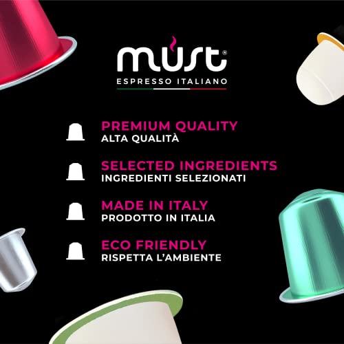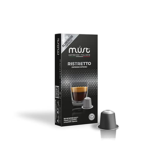 MUST - MUST 10 Coffee Capsules in 100% Aluminum Recyclable Indefinitely Ristretto Blend Intensity 7/8, Pack of 10 Capsules Compatible with Nespresso Machine, Made in Italy