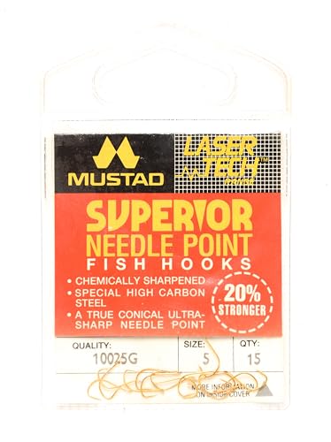Generic - Mustad 15PCS Circle Hooks Saltwater, Bass Hooks Fishing, High Carbon Steel - Gold - 375-S10025G-5/Size: 5