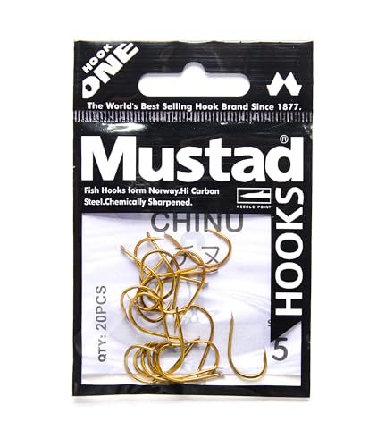 Generic - Mustad Fishing Hooks Superior Needle Point Chinu 20PCS Circle Hooks Saltwater, Bass Hooks Fishing, High Carbon Steel - Bronze - 375-S10001NPBE/5/Size: 5