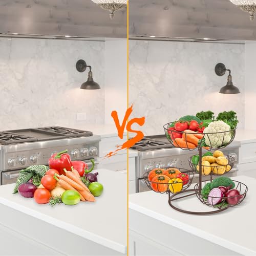- 🍓【Retro Decoration】Stylish design, the tiered fruit basket is full of retro colors, it can add a bit of classic and romantic iron art to your home, it is a unique existence in every position.