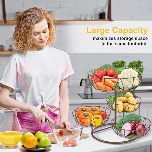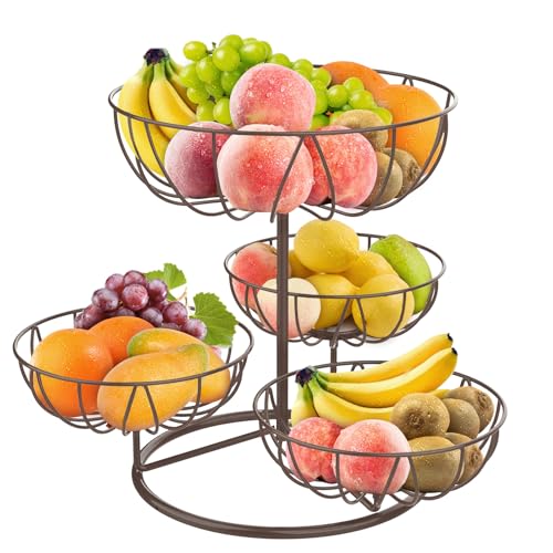 - 🍑【4 Tier Fruit Baskets】Are you still worried that there is no place to put the newly bought fruit? This 4 tier fruit basket can solve your problems. It has a 4-tier, roomy and spacious design that can accommodate fruits of various sizes and easily handle the weight when fully loaded.
