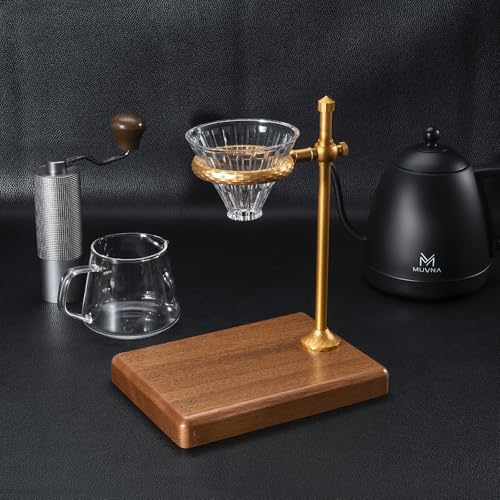 MUVNA - Pour over Stand, Dripper Coffee Stand, Coffee Filter Stand, Height Adjustable Brewing Coffee Holder with Walnut Base(bronze), big
