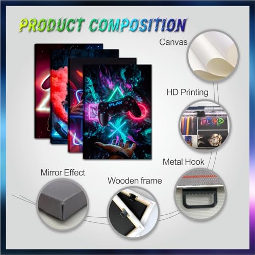 - Vibrant Gaming Theme: Transform any teen boy's room or bedroom into a gaming haven with this Colorful Gamepad Canvas Wall Art Set of 4. Featuring vibrant designs, these posters add an exciting touch to gamer decor.