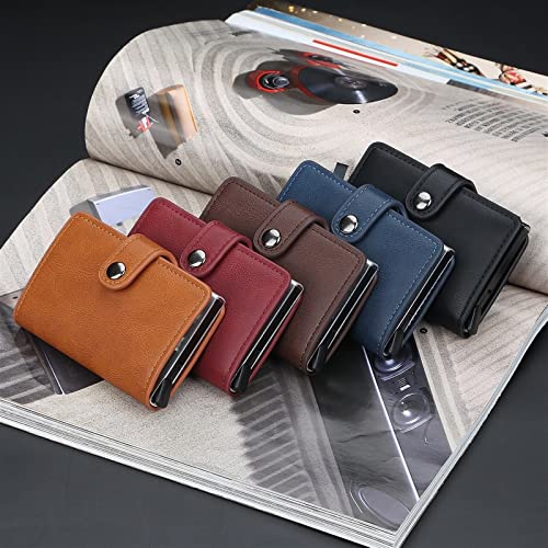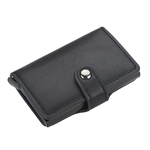 MUYUN - ميون جاكيت جلد للنساء والرجال، حامل بطاقات ائتمان بتقنية حجب تقنية تحديد الهوية بموجات الراديو مصنوع من جلد البولي يوريثين، حامل بطاقة هوية اعمال اوتوماتيكي، محفظة معدنية من الالومنيوم للبطاقات، أسود