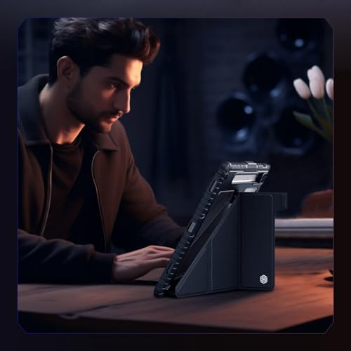 Muzz - Muzz Nillkin Bumper Leather cover case for Samsung Galaxy Tab S9 Plus Hard Pc Camera Protection Sheild Case With Pen Slot Anti-Fall Protective Cover For Samsung Galaxy Tab S9+ (11.0") 2023 (Black)