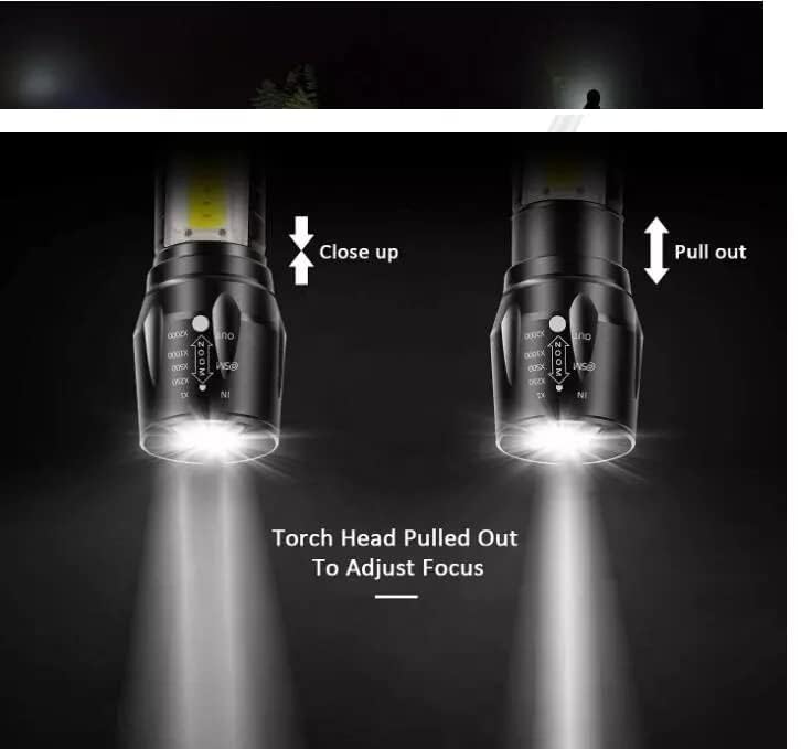 - وصف المنتج: مادة سبائك الألومنيوم عالية الجودة مع أداء ثابت ووقت خدمة طويل. تركيز قابل للتعديل، يمكنك التكبير / التصغير لضبط الشعاع. 4 أوضاع إضاءة ليد: زر ضغط للتشغيل والإيقاف مع إضاءة عالية اكس بي اي، ضوء وامض اكس بي اي، إضاءة سي او بي عالية. صغيرة وخفيفة الوزن، مع حبل، مريحة للحمل في أي مكان تريده.