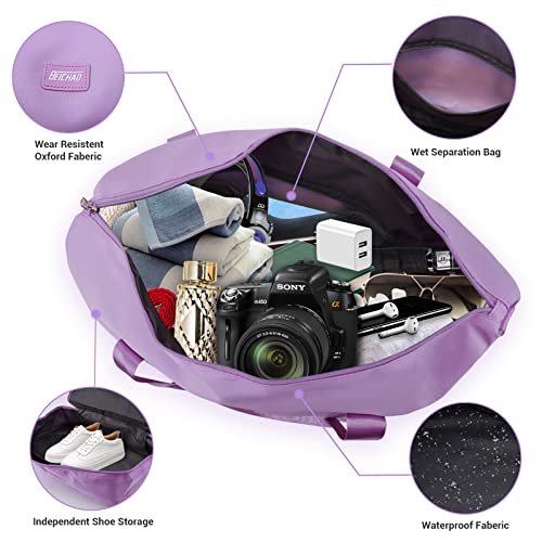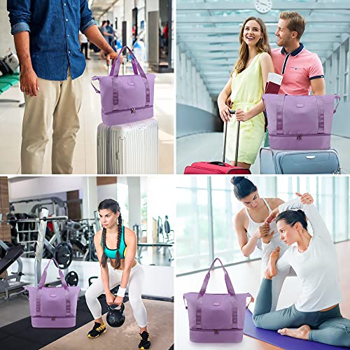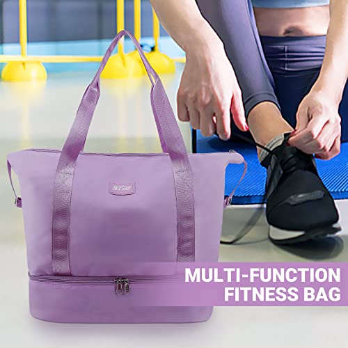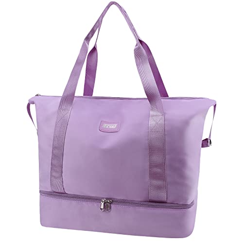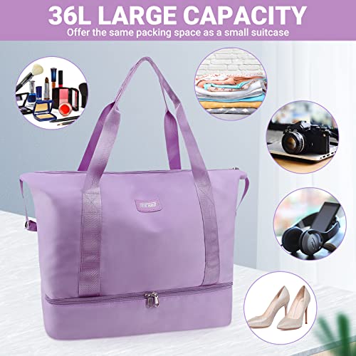 MXiiXM - شنطة دفل توت كبيرة للسفر وصالة الالعاب الرياضية مقاومة للماء ومناسبة للمبيت ليلة واحدة في اجازة نهاية الاسبوع وللحمل على الطائرة والشاطئ والمستشفى مع كيس رطب للنساء من ام اكس اي, أرجواني، قماش.