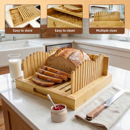 MXZZMHDJ - قطاعة خبز قابلة للتعديل وصينية متعددة الأغراض لتقطيع الخبز اليدوي والعجين المخمر والأرغفة الكبيرة والباجيت وغيرها من الخبز المنزلي من MXZZMHDJ مناسبة للخبازين المنزليين وعشاق الخبز