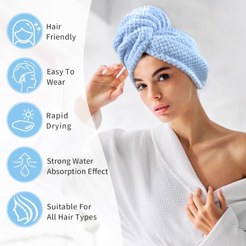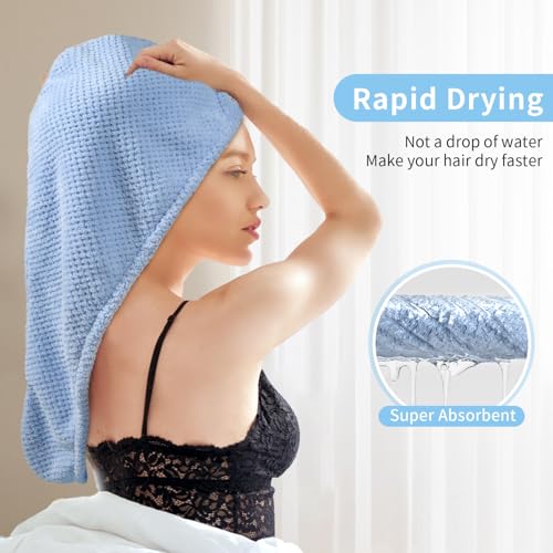 - 【Microfiber Hair Towel】Our Hair Towel Wrap is made from High Absorbency Microfiber, which are not only soft, breathable, and odorless but also quickly absorb moisture while keeping your hair voluminous. This allows your hair to dry faster, providing a refreshing hair-drying experience. The soft and skin-friendly material gently wraps around your hair, offering a comfortable touch even for the most sensitive scalps. It can also be used after bathing to protect your hair from dampness and environmental pollution.