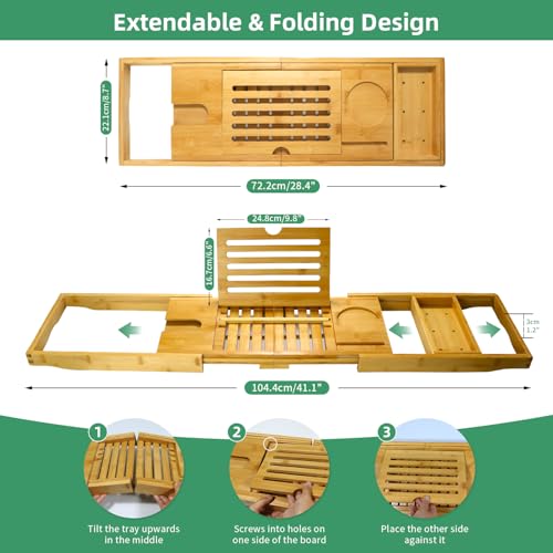 - Adjustable bath board: This bamboo bath board is specially designed to expand from 27.5 inches to 40.9 inches, the bathroom table fits almost any bathtub, you just need to manually adjust it to the correct length, no tools required. Our bathroom tables are equipped with non slip silicone handles that prevent the bathroom table from slipping, and you don't have to worry about your belongings falling into the bathtub. It is very convenient if you want to enjoy a luxurious bath for two.