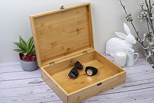 MYBERT - Bamboo Wooden Storage Box with Lid - Large Keepsake Box with Brass Latch - Decorative Storage Box and Memory Box for Keepsakes, Collectibles and Accessories