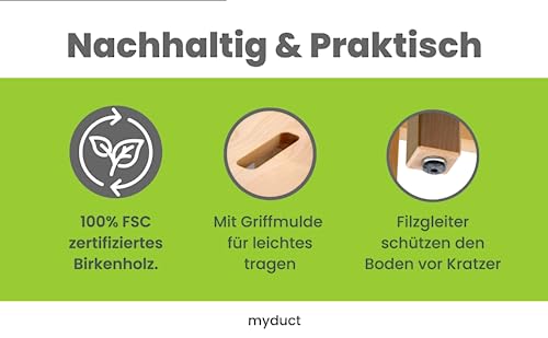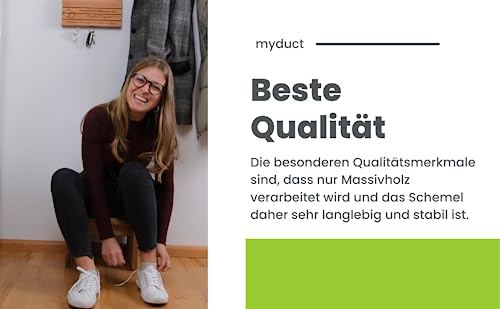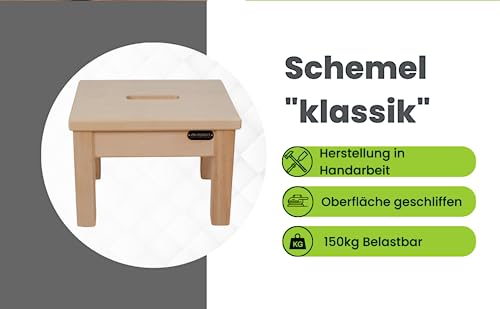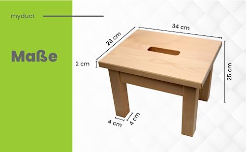 myduct - Classic Birch Wood Step Stool Sustainable and Stable Footstool in Natural Colour, Classic Shape, L x W x H: 34 x 28 x 25 cm, Maximum Load 150 kg, Handmade in Germany