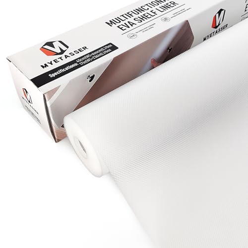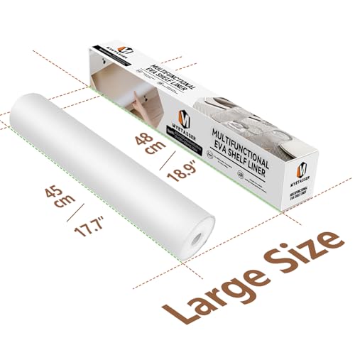 Myetasser - Shelf Liners Refrigerator Liners with Integrated Sliding Knife,17.7x236 inches EVA Drawer Liner for Ktichen Cabinet, Non Adhesive Waterproof & Oil-Proof Washable
