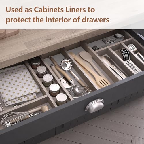 - Versatile liner, shelf liner is non-adhesive and can be used in cutting boards, drawers, cabinets, closets, shelves, refrigerators, wire racks, pantries, laundry rooms, filing cabinets, and work areas to avoid dirt and debris buildup and keep your stored items clean.