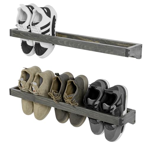 MyGift - MyGift 30 Inch Vintage Gray Solid Wood Wall Mounted Shoe Hanger Storage Rack, Hanging Shoes Organizer Shelf for Closet Mudroom Entryway, Set of 2 Holds 6 Pairs