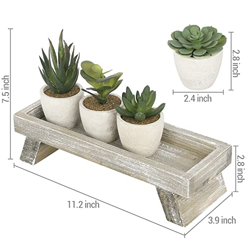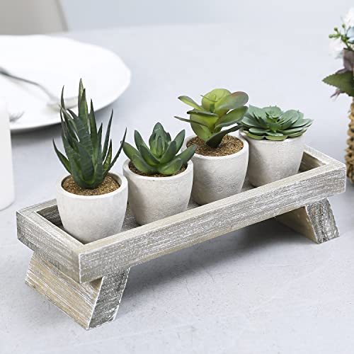 - Shabby brown washed wooden planter tray keeps all 4 faux succulent plants nestled inside while bringing a stylish accent to your plant display