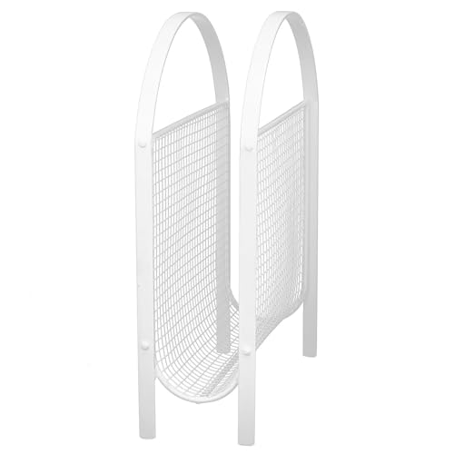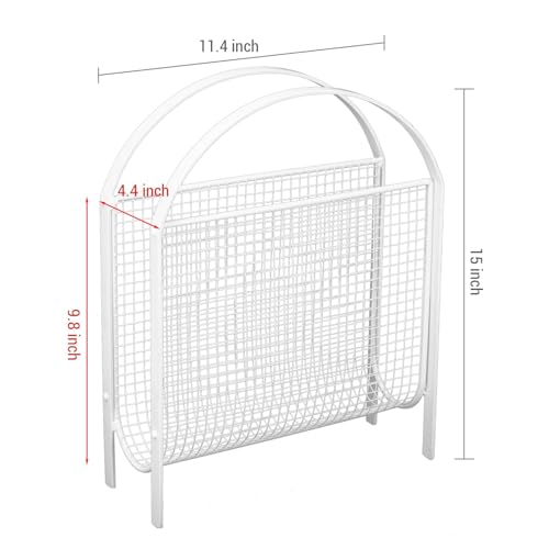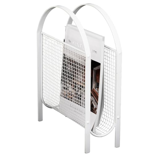 MyGift - ماي جيفت حامل مجلات معدني عصري قائم بذاته من ميد سينشري بلمسة نهائية بيضاء غير لامعة، سلة بتصميم شبكي قائم على الطاولة او الارض للمجلات والصحف