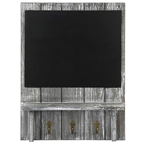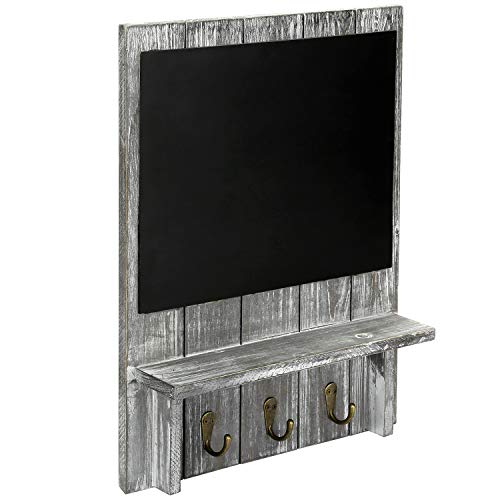 MyGift - MyGift Rustic Wood Wall-Mounted Organizer with Chalkboard, Shelf & Key Hooks