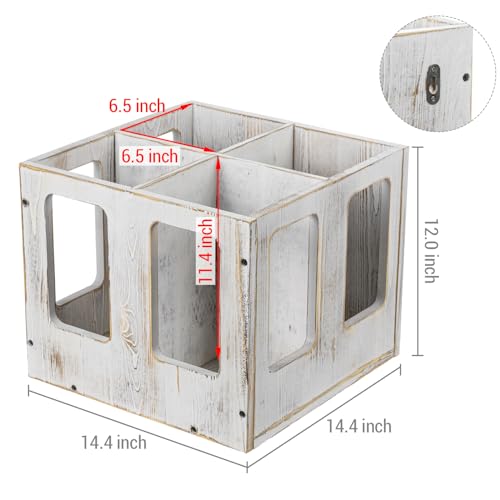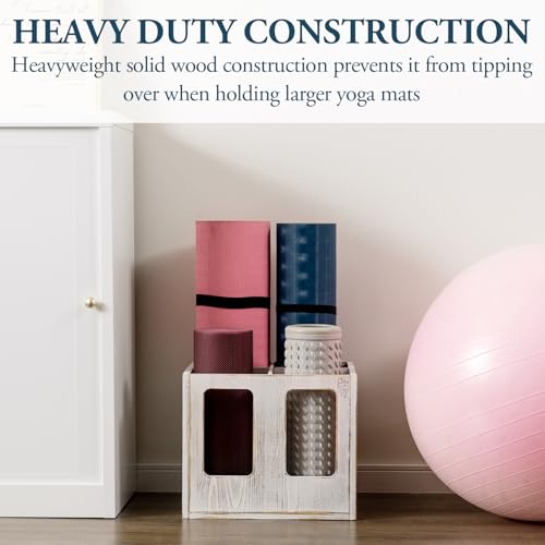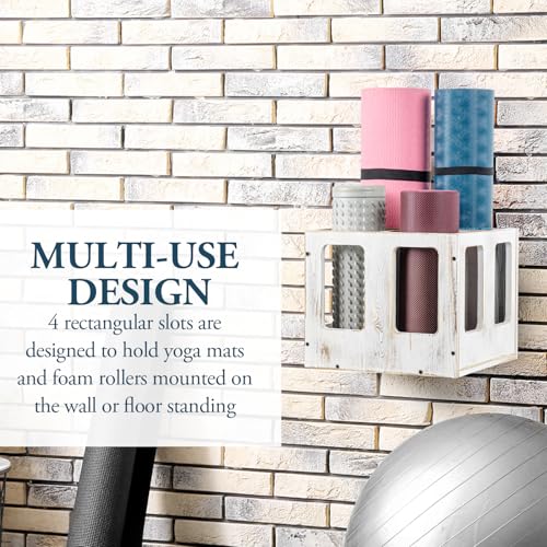 MyGift - MyGift Shabby White Washed Wood Foam Roller Storage Organizer with 4 Slots, Wall Mounted or Floor Standing Holder Rack for Yoga Mats and Gym Accessories