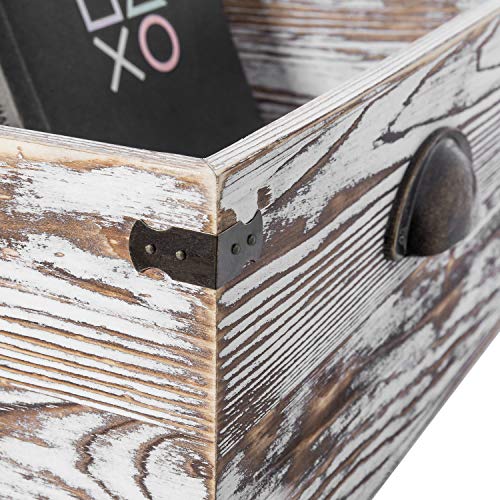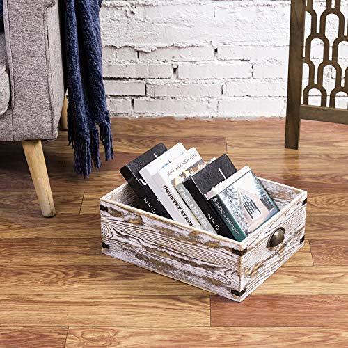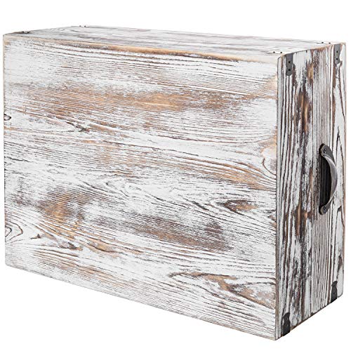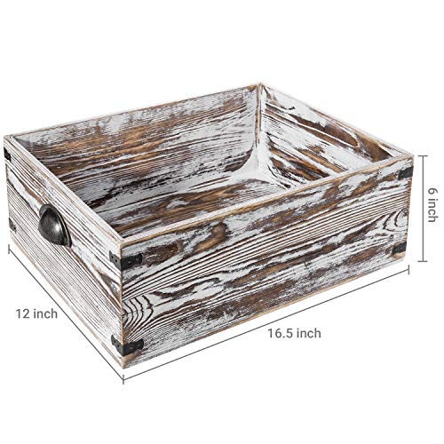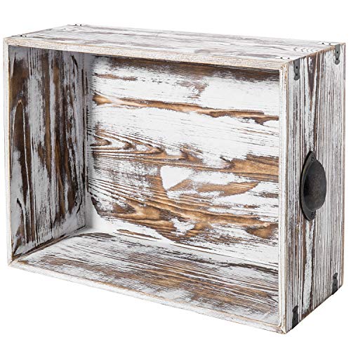 MyGift - MyGift Shabby Whitewashed Wood Open Top Storage Box with Vintage Metal Handles and Side Accent Wraps, Wooden Crates for Books, Albums, Toys and Crafts