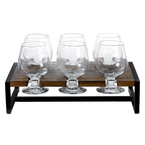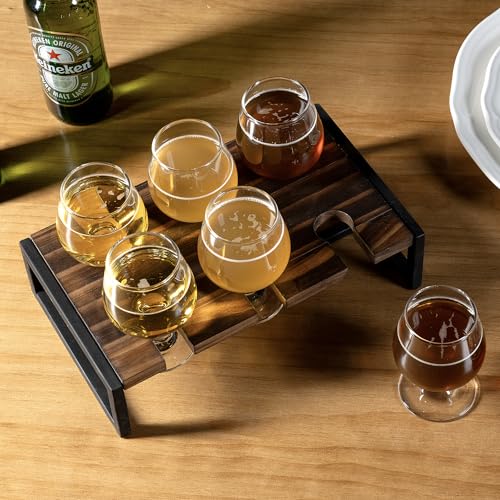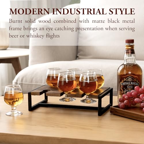MyGift - ماي جيفت مجموعة تذوق البيرة من اوربان اندستريال تتضمن صينية تقديم معدنية سوداء الخشب الصلب المحروق و6 اكواب شرب صغيرة ومارغريتا وعينات طيران لتذوق النبيذ