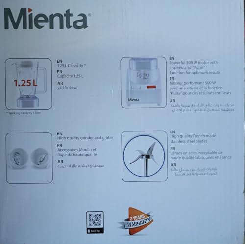 - Mienta BL-721 Blender & mixer with Grater And Grinder +Free Gifts Set of 3 Plastic Containers - 500 Watt - Made In Egypt