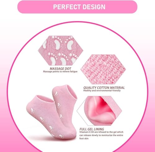 Generic - شرابات سيليكون للكعب من ماي سوك (1 زوج)، شرابات جل للسبا للنساء والرجال، شرابات واقية للقدم لترميم الكعب مع زيت طبيعي مرطب وفيتامين اي لإصلاح القدم الجافة المتشققة (وردي فاتح)