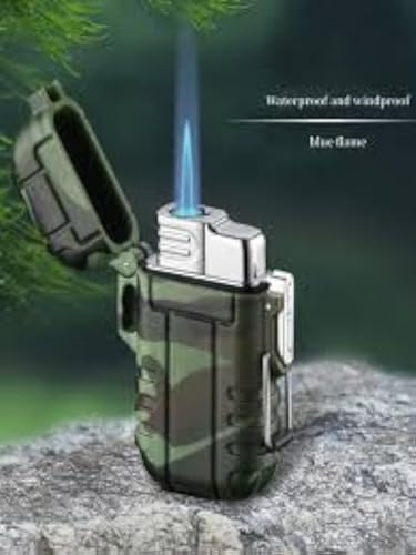 Generic - MySouq-Store [1 Pcs- Yallow ] Outdoor Waterproof Lighter with Lanyard Portable Blue Flame Jet Lighter Butane Turbo Cigar Lighter Camping Wading Men's Gadgets (Random Colors)