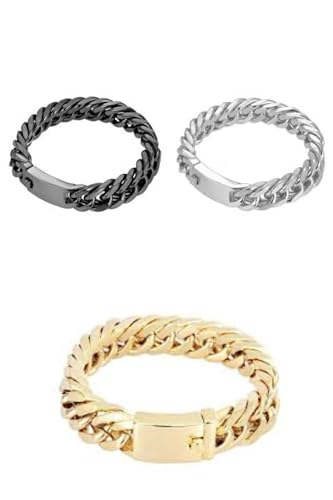 Generic - MySouq-Store [1Pc- 20Cm ] New Trendy Cuban Chain Bracelet Men's Bracelet Fashion Metal Gold-Plated and Silver Bolt Chain Bracelet Accessories Party Jewelry (As shown)