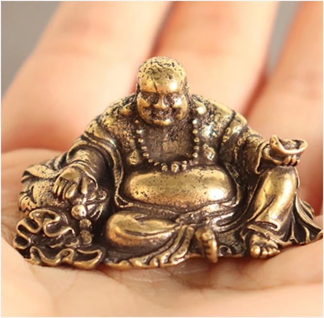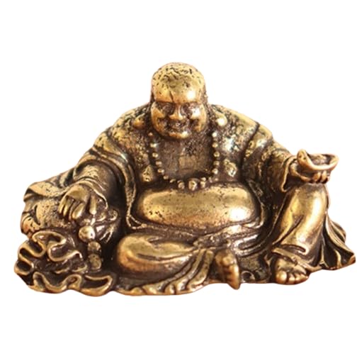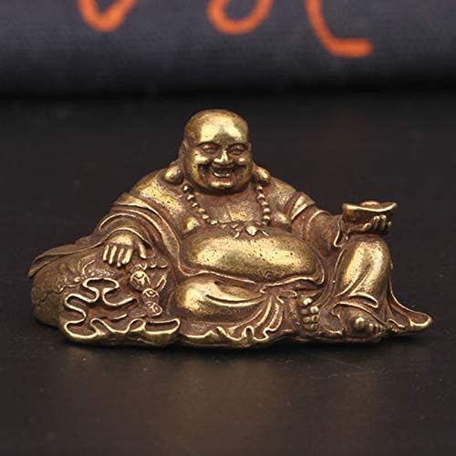 Generic - MySouq-Store 1PC- Figurine Small Brass Statue Golden Brass Craft Miniatures Sculpture Antique Bronze Large Belly Laughing Maitreya Buddha Statue Desk Copper Ornament Crafts Brass