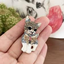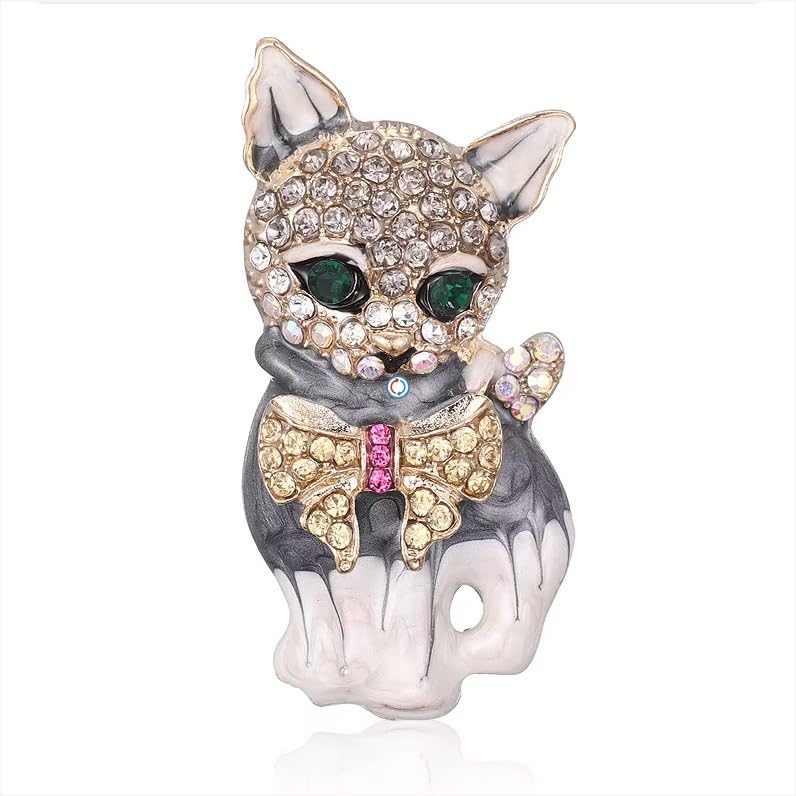 Generic - MySouq-Store 1Pcs Cute Cat Brooch Decoration Metal Brooch Scarf Sweater Suit Pin Up Buckle Rhinestone Animal Brooch Safety Pins Collar Jewelry Pin - Code N15-11Gram - 4X2Cm