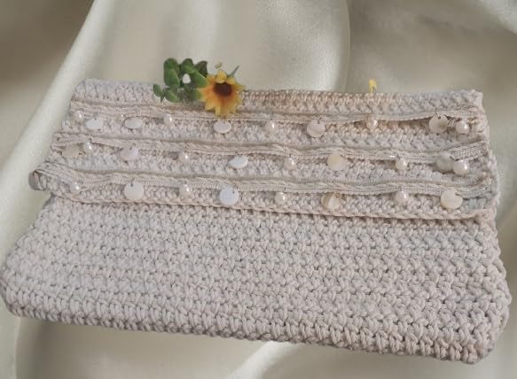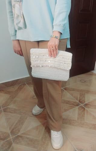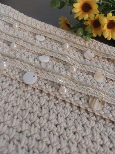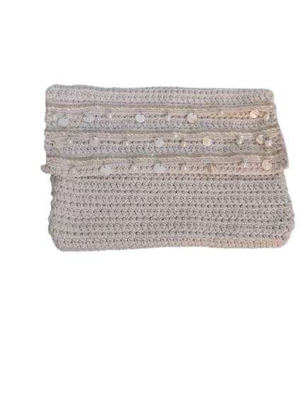 Generic - شنطة يد كروشيه انيقة مصنوعة يدويا (اوف وايت) مزينة بالترتر بطول 22 سم وعرض 29 سم من ماي سوق ستور (قطعة واحدة)