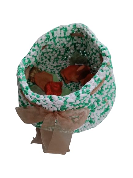 - وبونيره من الكورشيه مصنوعة يدويًا، تتميز بحجم مثالي يبلغ 25 × 25 سم، مما يجعلها متعددة الاستخدامات. يمكن استخدامها لتزيين الطاولات في المناسبات، أو كوحدة تخزين صغيرة، أو كهدية مميزة. التصميم الفريد يضيف لمسة جمالية لأي مكان، كما أنها مصنوعة من خامات عالية الجودة تضمن المتانة والجاذبية. سواء كنت تبحث عن لمسة فنية لمنزلك أو هدية فريدة لأحبائك، فإن هذه البونيره هي الخيار المثالي.