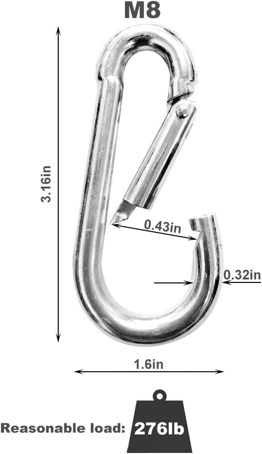 Generic - MySouq-Store 4 Pack Spring Snap Hook Carabiner Clips Heavy Duty M8, Spring Snap Link for Swing, Hammock, Crafts, Gym, Kayaking, Dog Leash (4xM8)