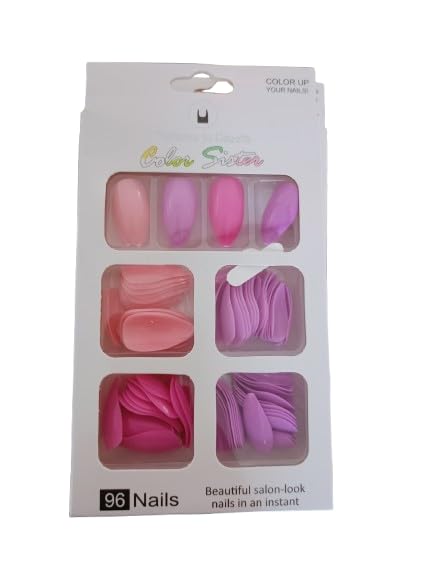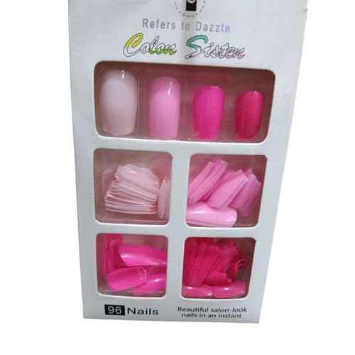 Generic - MySouq.Store 96Pcs Colored False Nails Tips Set - French Style Acrylic Artificial Tip Manicure - 4 Colored Nail Art - Salon-Lock Instant Home Use