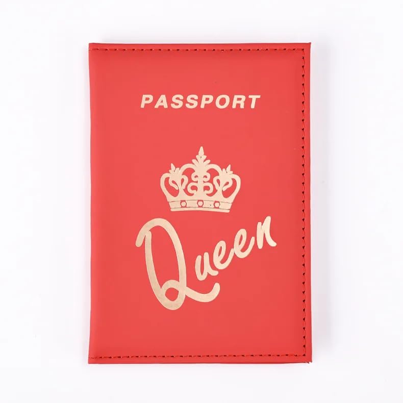 Generic - MySouq-Store Crown Print PU Passport Covers Passport Protector Passport Holder Flight Ticket Holder ID Credit Card Holder Travel Accessories (Queen, Red)